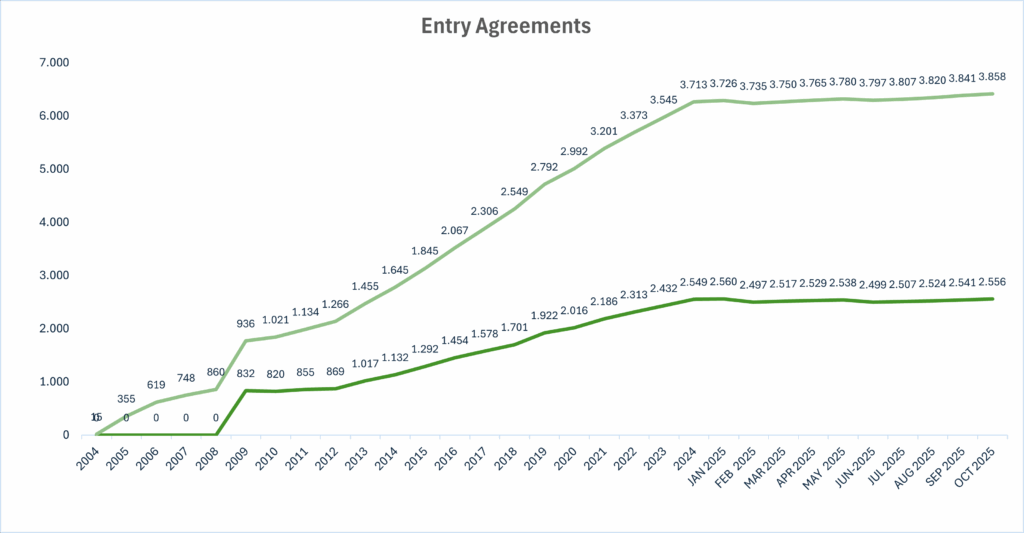 - The Entry Agreement which must be signed in 2 copies (the legal representative is required to sign with their initials on all pages (33) as well as provide a corporate seal, apart from the signature, on page (20) under the contracting parties)